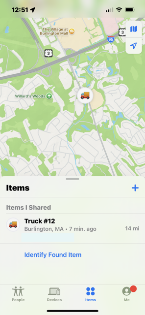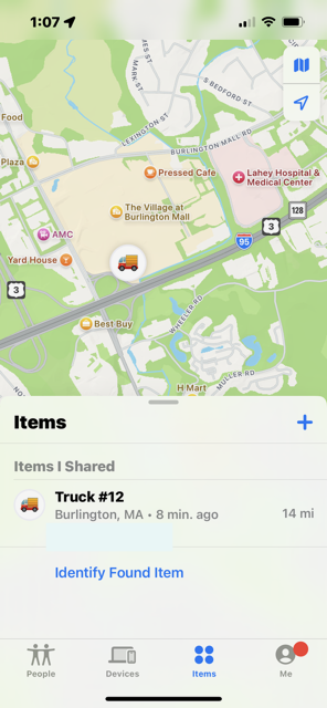Putting an Apple AirTag on each truck's keyring is a good solution.